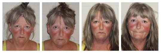 (–Here are her four mugshots from the 26-hour span.)