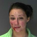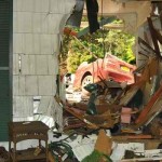 (–Here’s her mugshot, plus a photo of the huge hole in the house and the car in the backyard.)
